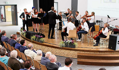 Foto 2: 40 Jahre Humboldt-Gymnasium Gifhorn: Beim großen Festakt am Freitag vor Kreistagsmitgliedern und Vertretern aus Schulen sowie Ehemaligen gab es ein unterhaltsames Programm. Dabei trat auch das Schulorchester unter der Leitung von Edgert Laurien auf.